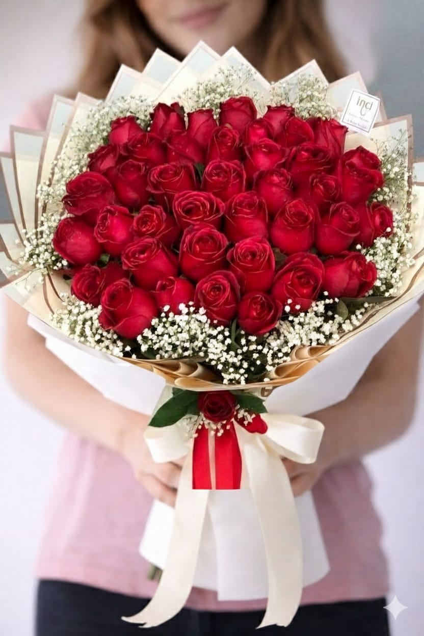 Gösterişli tasarımı ve yoğun kırmızı tonlarıyla dikkat çeken bu özel buket, tam 41 adet kırmızı gülden oluşur. Her bir gül, sevgi, hayranlık ve iyi dilekleri simgeleyerek “41 kere maşallah” demenin en zarif yolunu sunar.