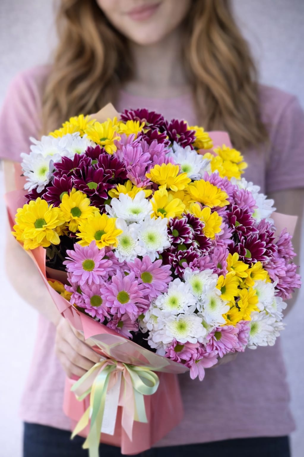 Bu özel buket, karışık renk krizantemler kullanılarak hazırlanır. Günlük olarak seçilen taze çiçekler, deneyimli çiçek tasarımcılarımız tarafından özenle düzenlenir. Yoğun çiçek yapısı sayesinde dolgun ve gösterişli bir görünüm sunar.